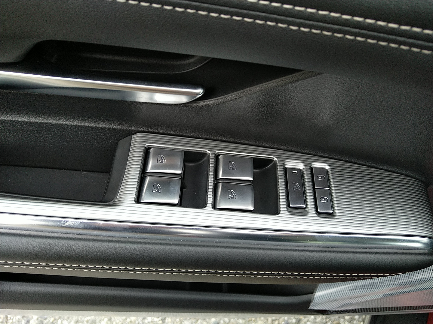 - Weiße Ziernähte im Bereich der Sitze